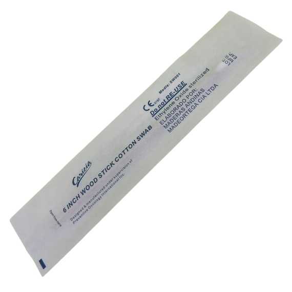 Palillo de madera, libre de astillas, con un extremo con algodón hidrófilo 100% blanco, inodoro, 10 cm a 15 cm x 2 mm a 2,5 mm, estéril, desechable.