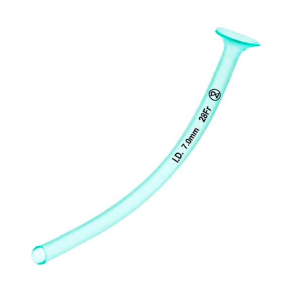 Extremo proximal tipo trompeta para evitar que el tubo se desplace hacia la vía aérea nasal.