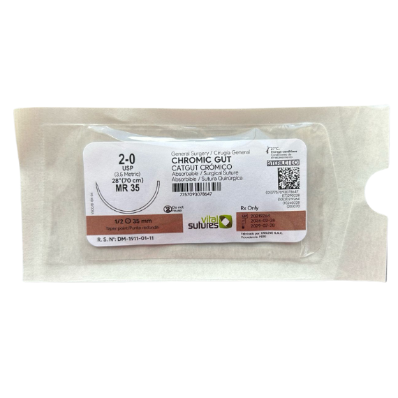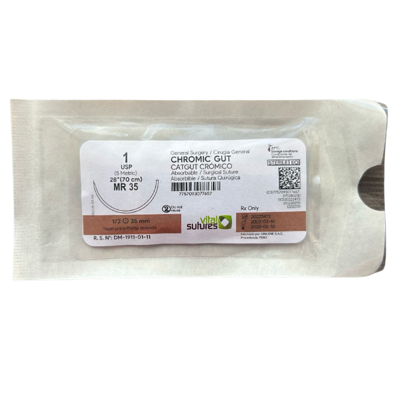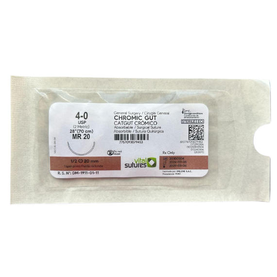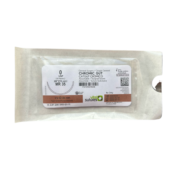 Sutura sintética absorbible con sales de cromo.
