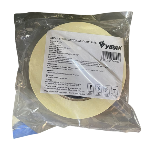 Cinta cambia de color a amarillo con el calor indicando que el proceso de esterilización está completo.