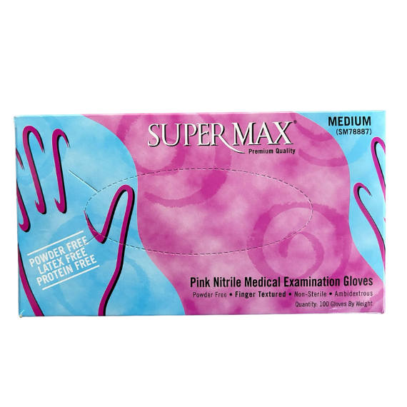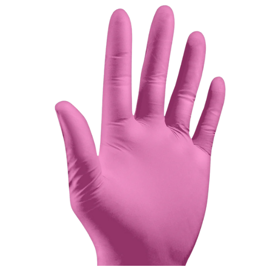 Guante de nitrilo rosado texturados fabricados 100% nitrilo. Libre de látex. Sin talco. Libres de caucho. Diseño ergonómico, micro‐texturado, puños en el borde para mayor comodidad. Certificación FDA. Ambidiestros.