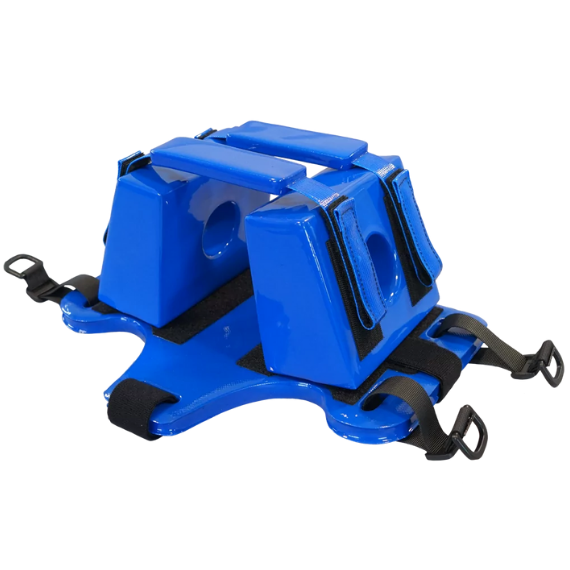 Consiste en una base, dos almohadillas para la cabeza y dos correas para la cabeza. Fijaciones de velcro fuertes para asegurar las almohadillas en la base. Los orificios en cada almohadilla para la cabeza permiten controlar la pérdida de sangre y fluidos. Las correas para la cabeza proporcionan un soporte lateral máximo. Fácil de desmontar y lavar.