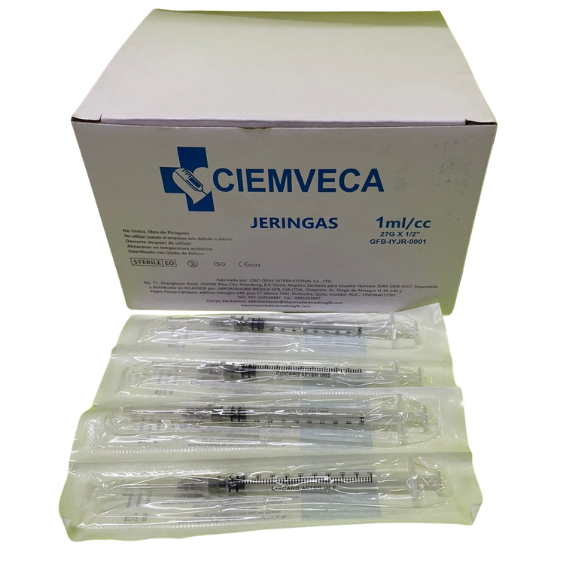 Jeringa de 1ml con aguja 27G de 1/2 pulgada unidad