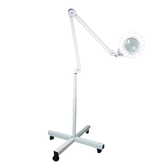 Lupa tipo pedestal con brazo adaptable a diferentes posiciones.