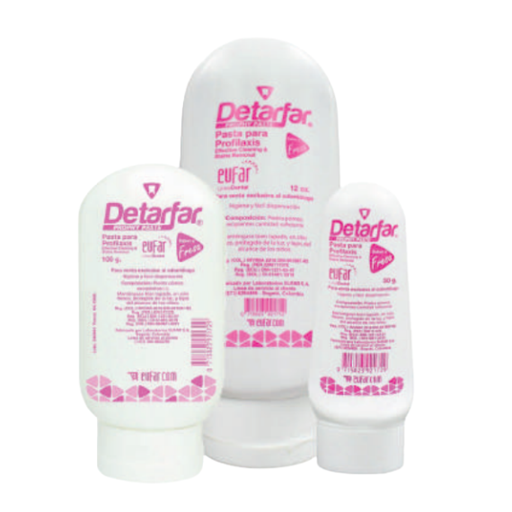 Pasta profiláctica, que actúa eficazmente ayudando a eliminar sarro, manchas y residuos en procedimientos de profilaxis, con copa de caucho y/o cepillo.