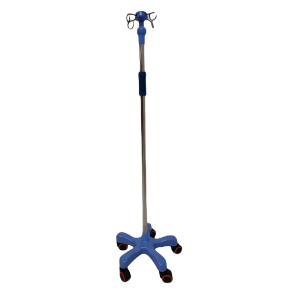 Soporte para sueros y equipos relacionados con la administración por vía parenteral.Columna estructural construida con tubo redondo de acero inoxidable.Cuatro ganchos fabricados con varilla redonda de acero inoxidable.Altura variable de 100cm -190cm con perilla roscada para fijar la altura.