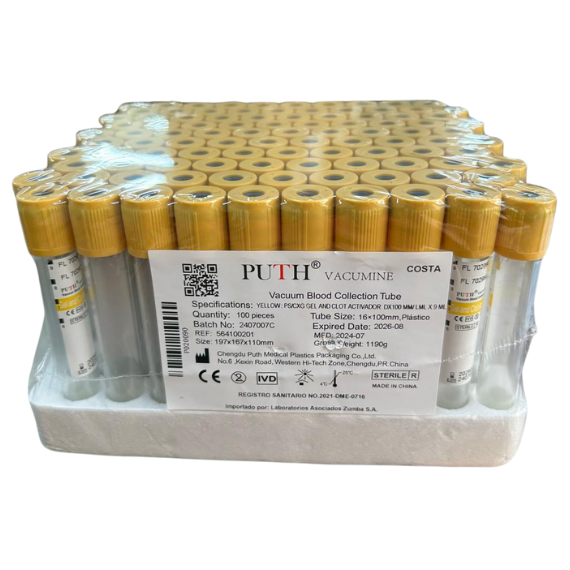 Contiene gel separador y un activador de la coagulación, adherido a las paredes del tubo plástico.