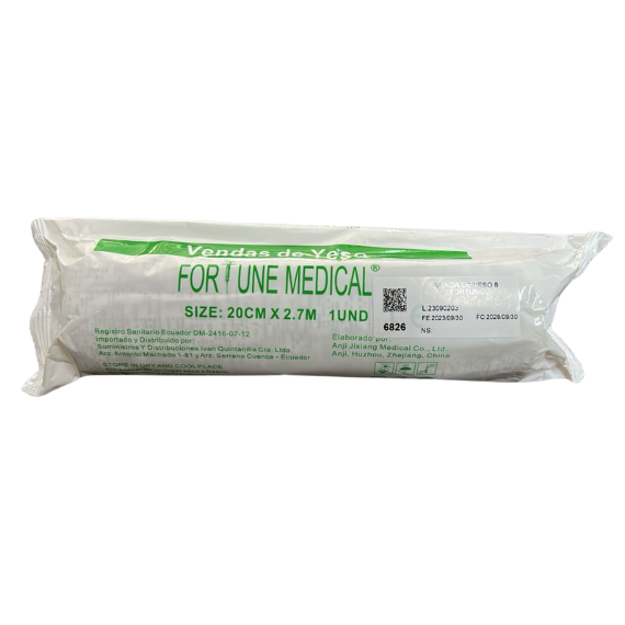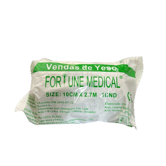Venda fabricada de gasa de algodón, recubierta o impregnada de mezcla de yeso enrollada en corte redondo de plástico.
