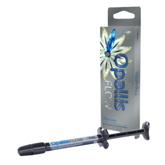 Marca: FGM Línea: Opallis Flow Tipo: resina compuesta fluida de baja viscosidad Tono: A1 (universal claro) Presentación: jeringa de 2 g Formulación microhíbrida con excelente pulido y fluidez controlada Textura homogénea, estable y fácil de aplicar en demostraciones