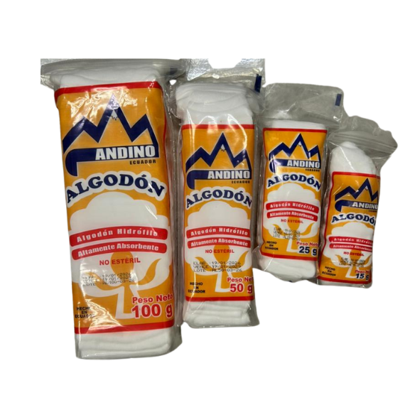 Algodón hidrófilo elaborado con fibras suaves y altamente absorbentes. Textura ligera y esponjosa que permite una aplicación cómoda y uniforme. Presentaciones prácticas de 15 g, 25 g, 50 g y 100 g, adaptadas a diferentes necesidades. Producto versátil, útil en hogar, estética, laboratorio o actividades generales. Fácil de manipular, almacenar y transportar.